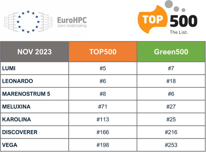 All the EuroHPC operational petascale supercomputers, Meluxina, Vega, Discoverer and Karolina, have achieved recognition in the global rankings, securing positions among the top 200 supercomputers worldwide, according to the TOP500 list.